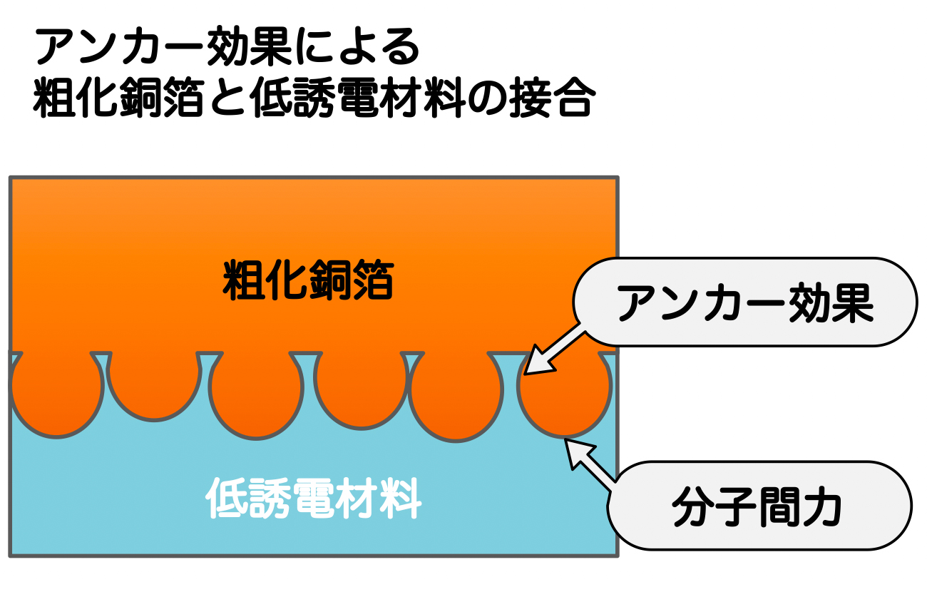 低誘電材料と平滑な銅箔が求められる一方で、これらの接着には技術的な難しさがあります。